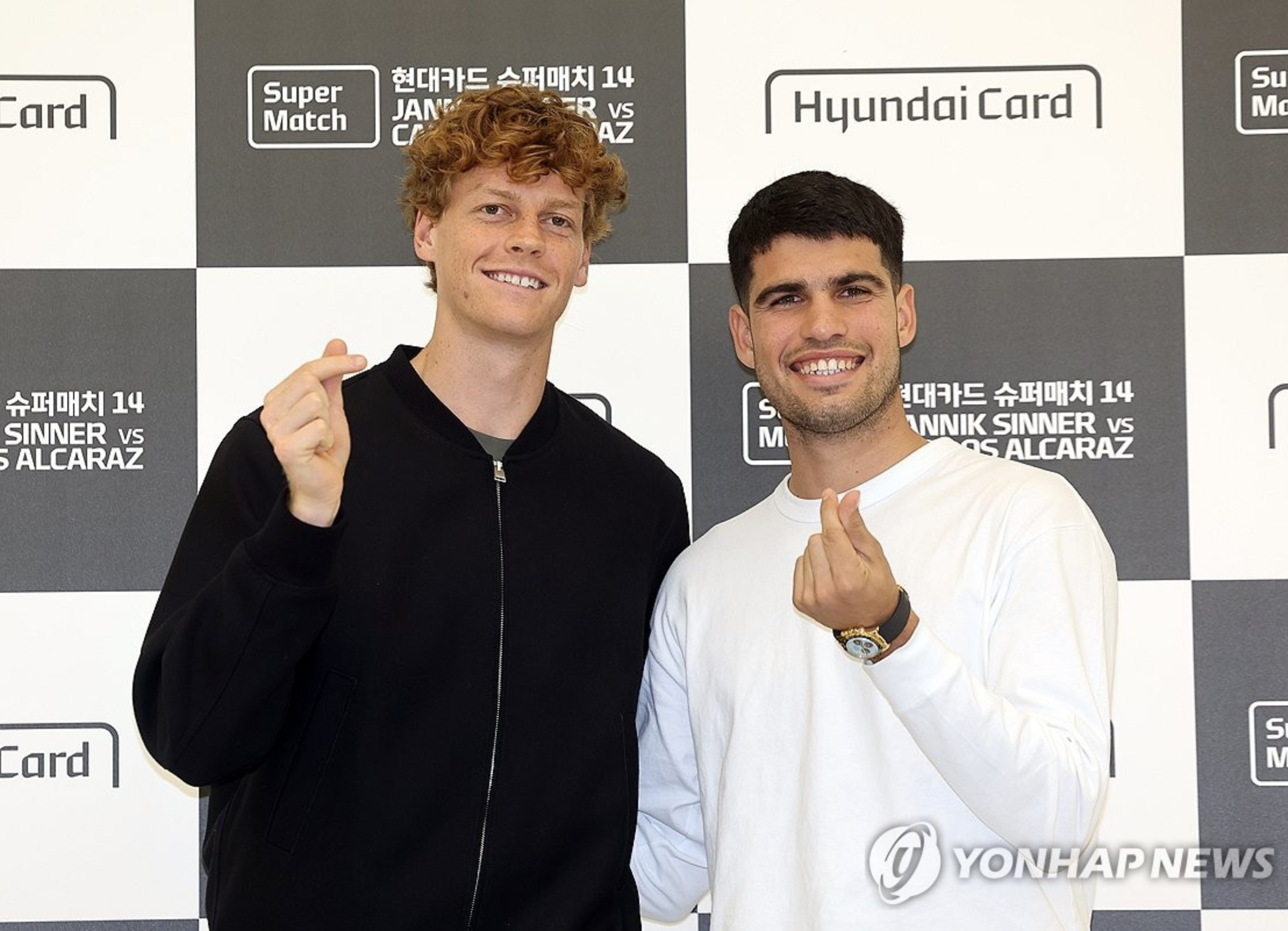 10일 현대카드 슈퍼매치에서 맞대결 하는 남자프로테니스(ATP) 투어 단식 세계 랭킹 1, 2위 카를로스 알카라스(스페인)와 얀니크 신네르(이탈리아)가 한국 팬들의 환영에 감사의 마음을 전했다.