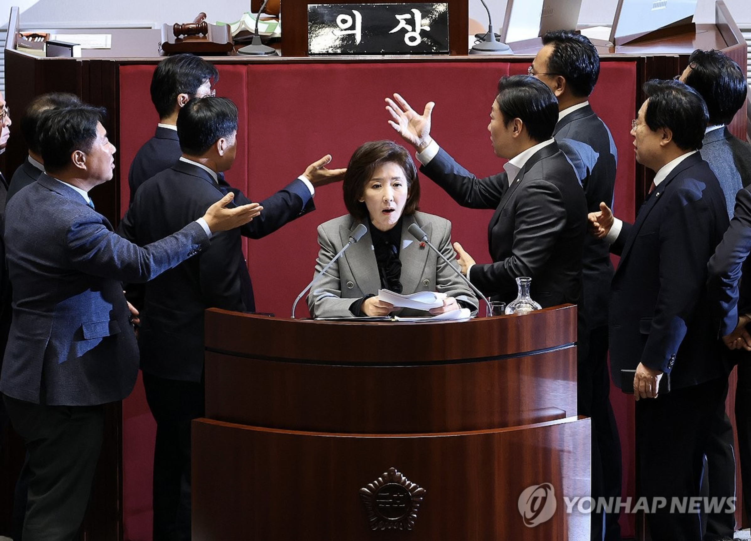 우 의장은 의장석에 앉아 굳은 표정으로 이런 본회의장 상황을 지켜보다 나 의원에게 "누가 마이크를 갖다줬느냐"고 질책하기도 했다.