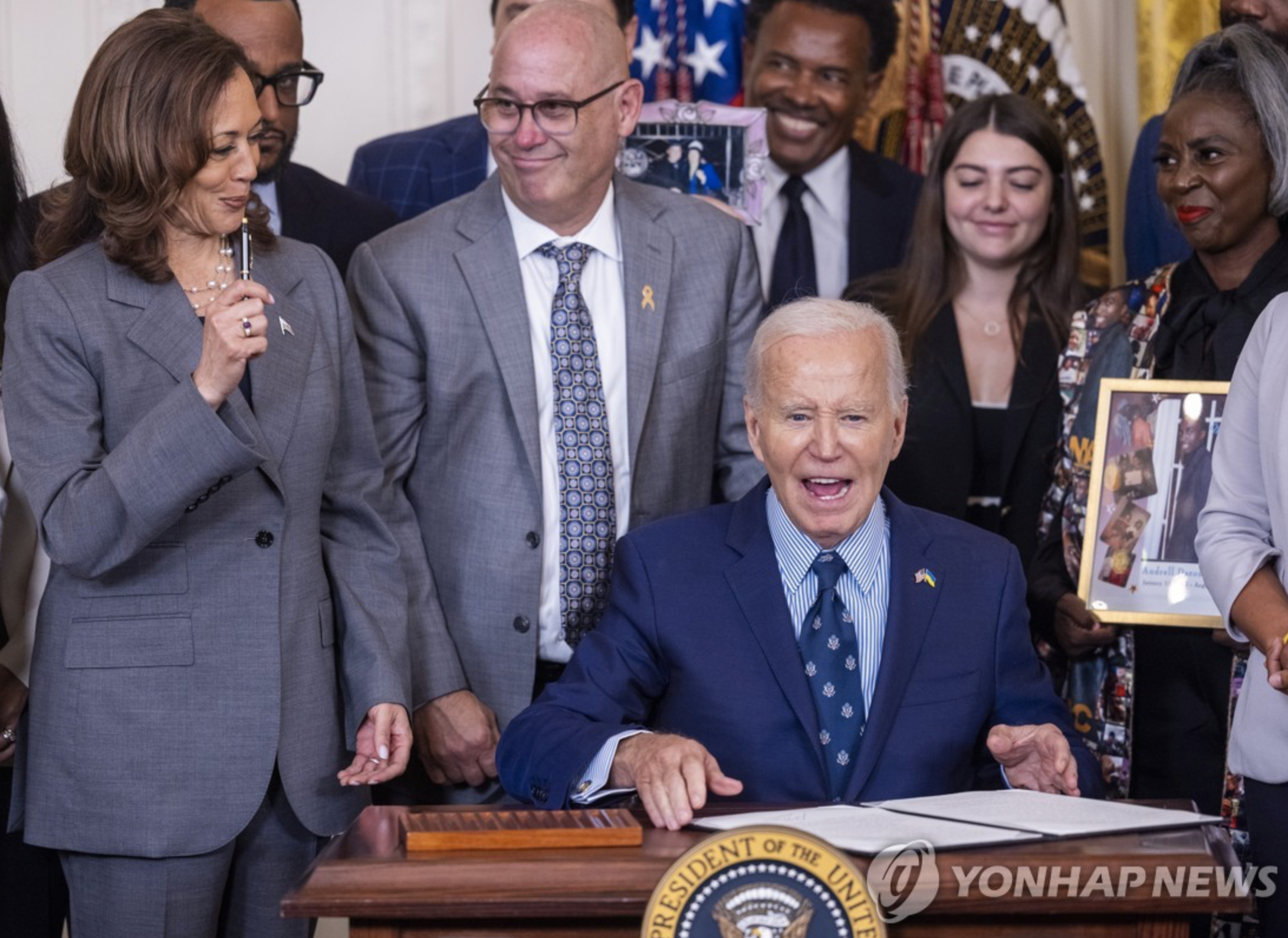 트럼프 미국 대통령이 백악관에 전시한 바이든 전 대통령의 오토펜 사진