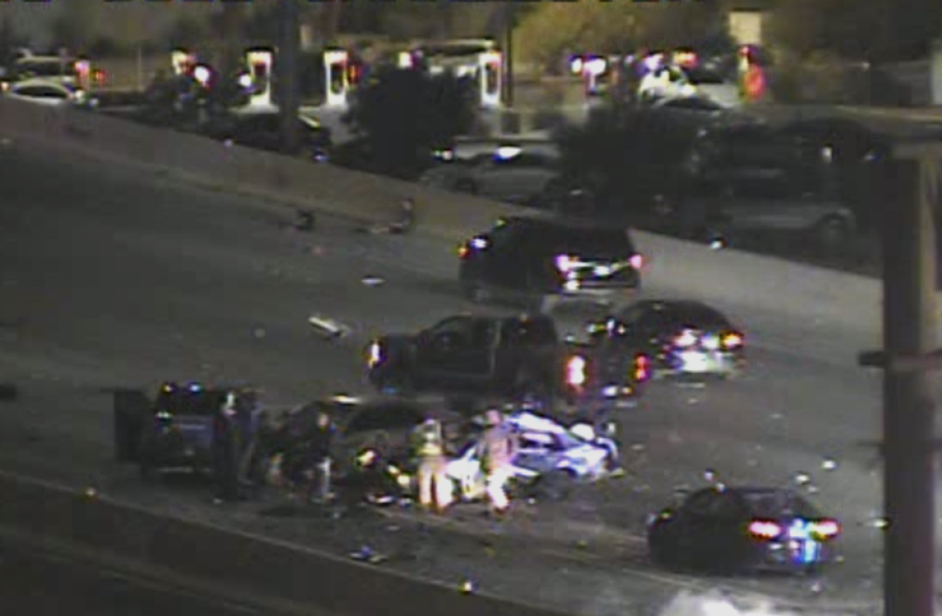 찰스턴 근처 I-15에서 잘못된 방향으로 주행하던 차량이 충돌, 1명 사망, 3명 부상 베가스조아 0 18 12.12 08:33 네바다 고속도로 순찰대(네바다 주 경찰의 한 부서)가 찰스턴 근처 북bound I-15에서 발생한 6대 차량의 치명적인 충돌 사고를 조사하고 있습니다.사고는 목요일 오후 6시 48분에 발생했으며, 잘못된 방향으로 주행하던 운전자가 현장에서 사망한 것으로 확인되었습니다.관계자에 따르면, 3명이 지역 병원으로 이송되었으며, 이 중 2명은 중상, 1명은 경상을 입었습니다.사고에 대한 추가 세부사항은 공개되지 않았습니다.사고로 인해 찰스턴 근처 북bound I-15의 모든 주행 차선이 몇 시간 동안 폐쇄되었습니다.