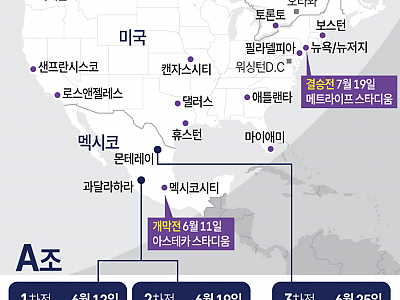 [그래픽] 2026 북중미 월드컵 A조 한국팀 경기장 위치2026 국제축구연맹(FIFA) 월드컵은 북중미의 광활한 캐나다, 미국, 멕시코에서 공동 개최되다 보니 참가국별로 천차만별인 이동 거리가 중요한 변수 중 하나…