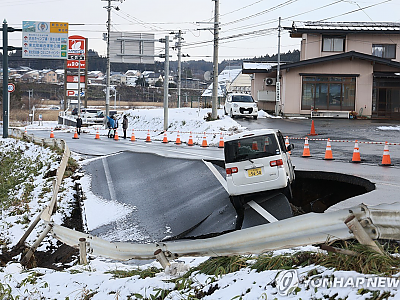 작년 '난카이 거대 지진 주의'와 유사…1주일간 거대 규모 지진 대비 독려용어 생소해 일부 주민 당혹감…"인공 지진"·"곰의 재앙" 등 헛소문 나돌아아오모리현 강진으로 무너진 도로일본 정부가 혼슈 동북부 아오모리현 …
