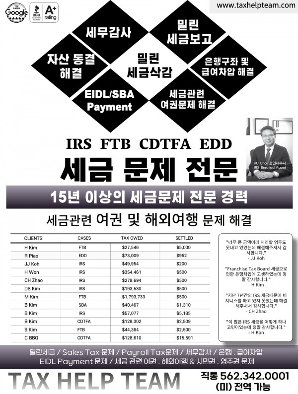 밀린세금 . Sales Tax 문제 . Payroll Tax 문제