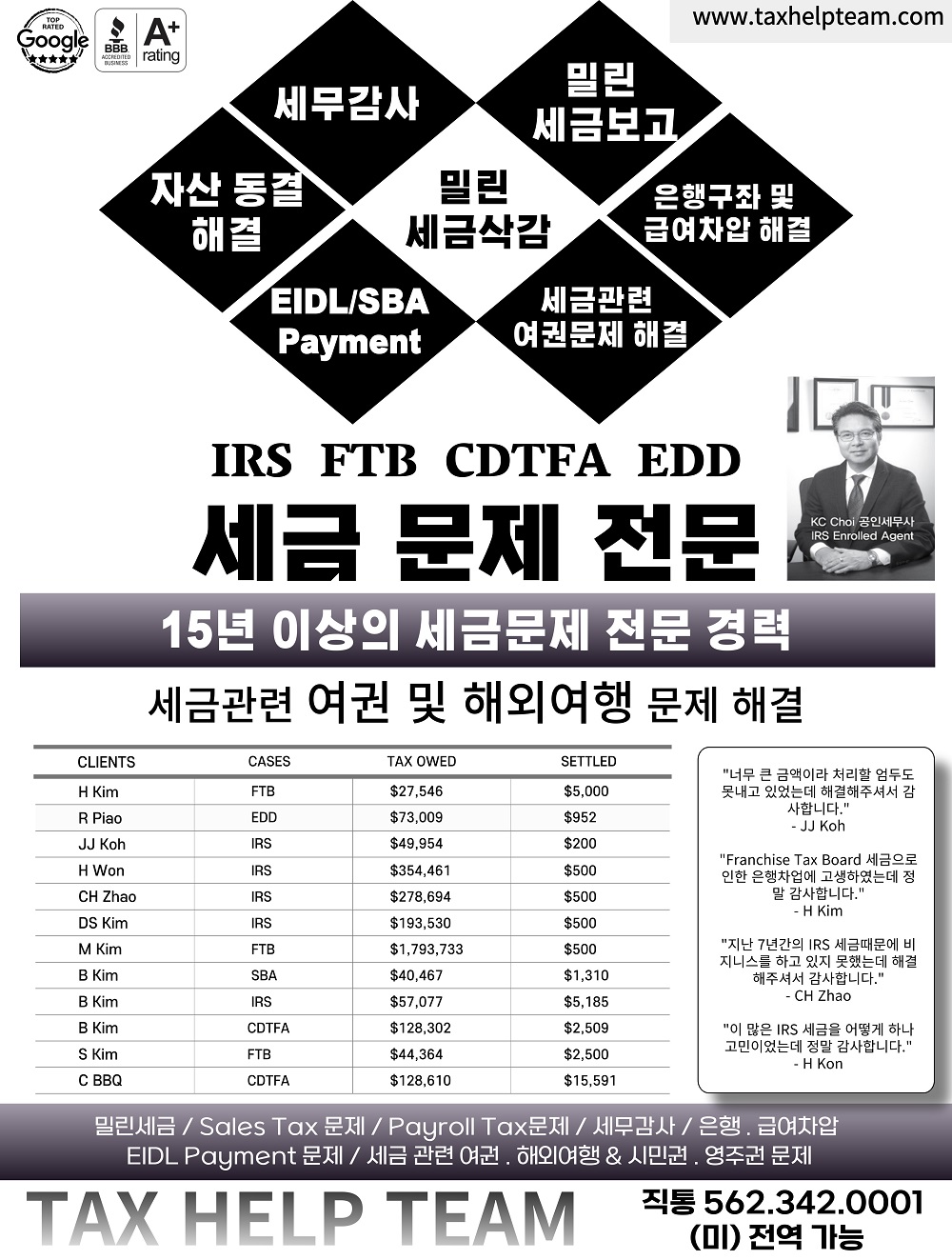 15년이상의 세금문제 전문 경력