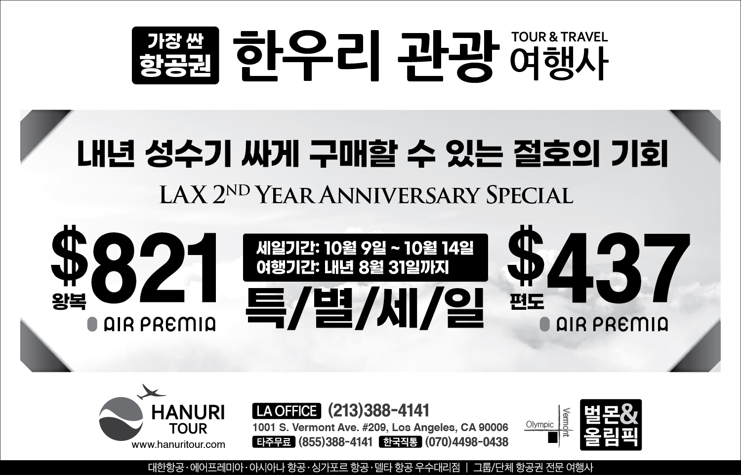 한국행 국적기 특가 (213-388-4141)