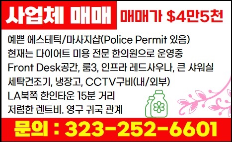 예쁜 에스테틱/마사지샵(Police Permit 있음)
