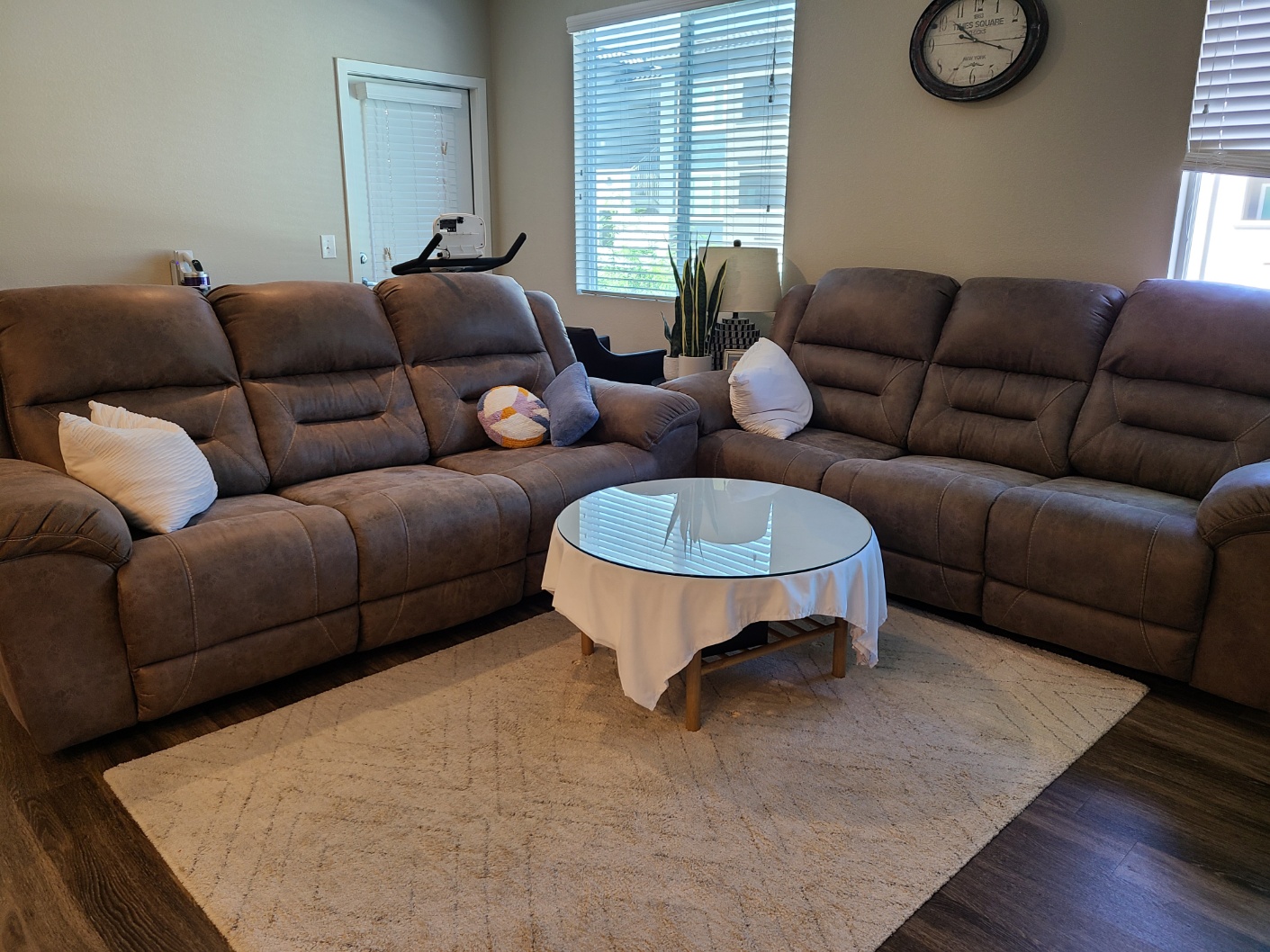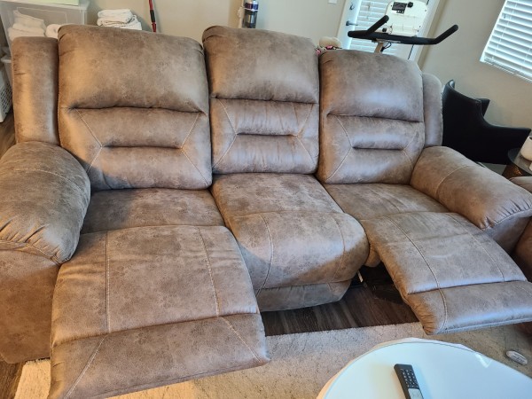 > > 새것 같은 밤색 인조가죽 소파 2 개 (3인 소파) 각각 - $200 (was $800 each new)