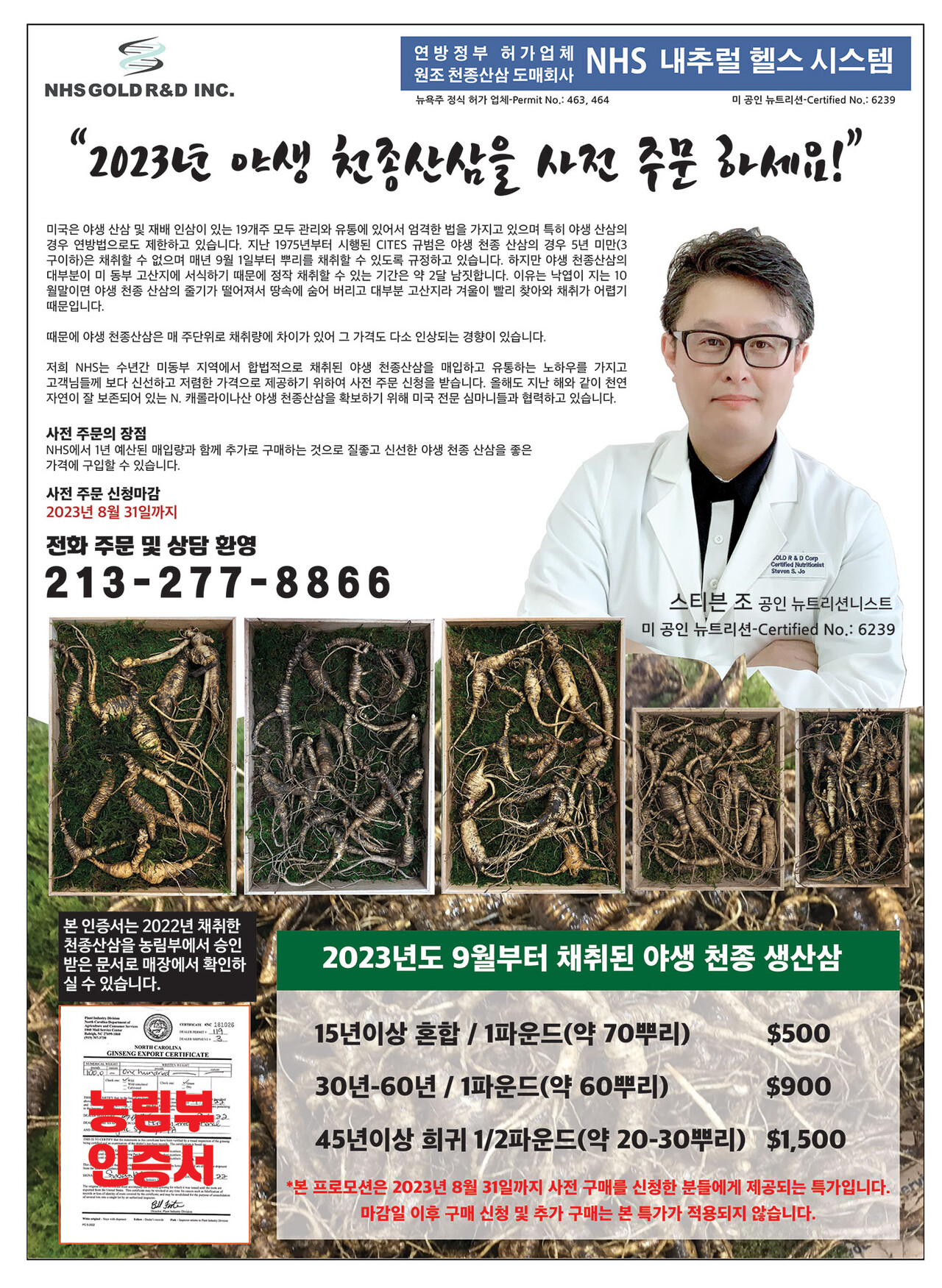 사전 구매는 NHS에서 매년 9월부터 채취될 야생 천종산삼을 확보하는데 추가되는 것으로