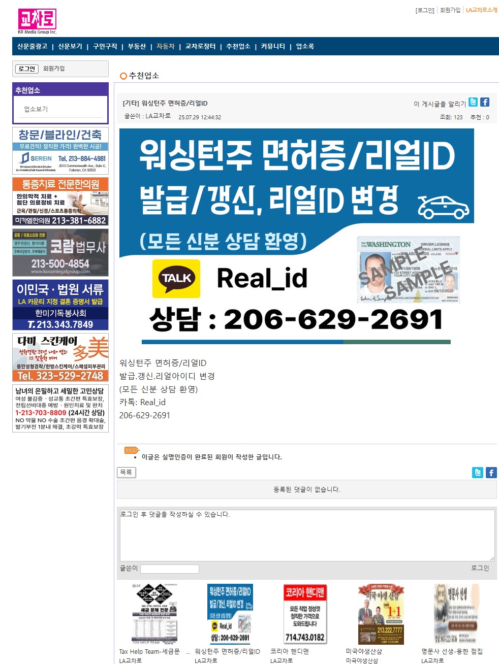 Washington State 리얼 아이디 (모든 신분 상담환영