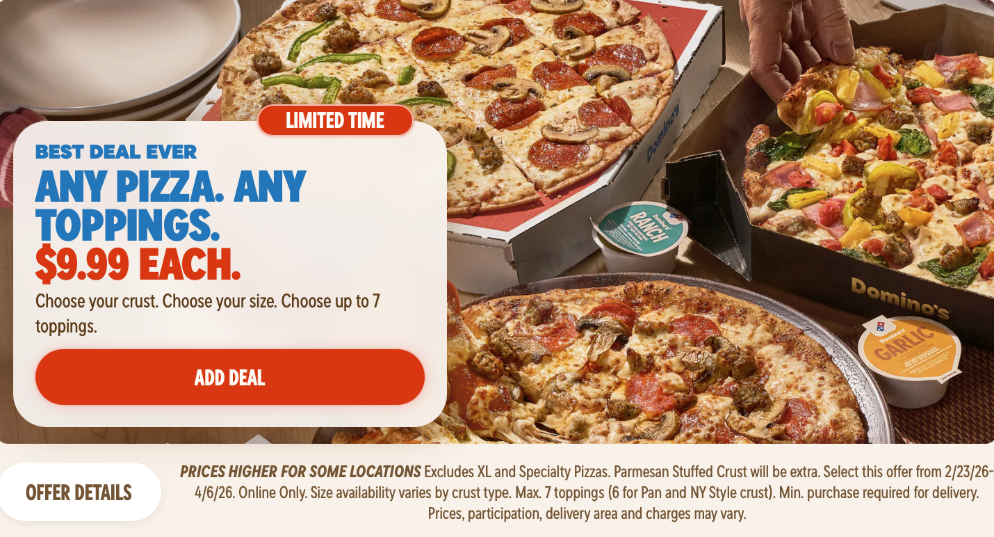 도미노피자 $9.99 DEALS