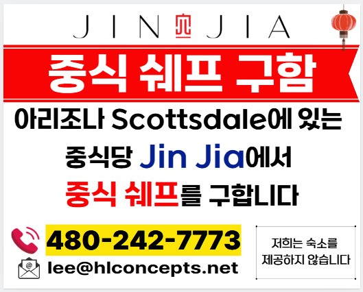 중식당 Jin Jia에서 중식쉐프를 구합니다