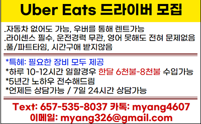 Uber Eats 드라이버 모집