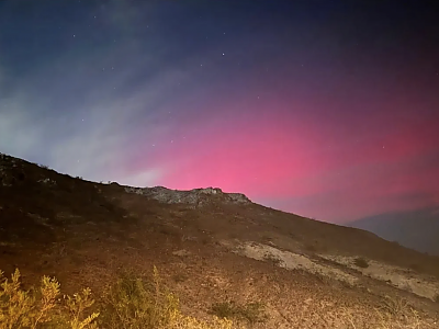 지자기 폭풍의 영향으로 라스베이거스 상공에서 오로라(북극광)가 관측됐다.