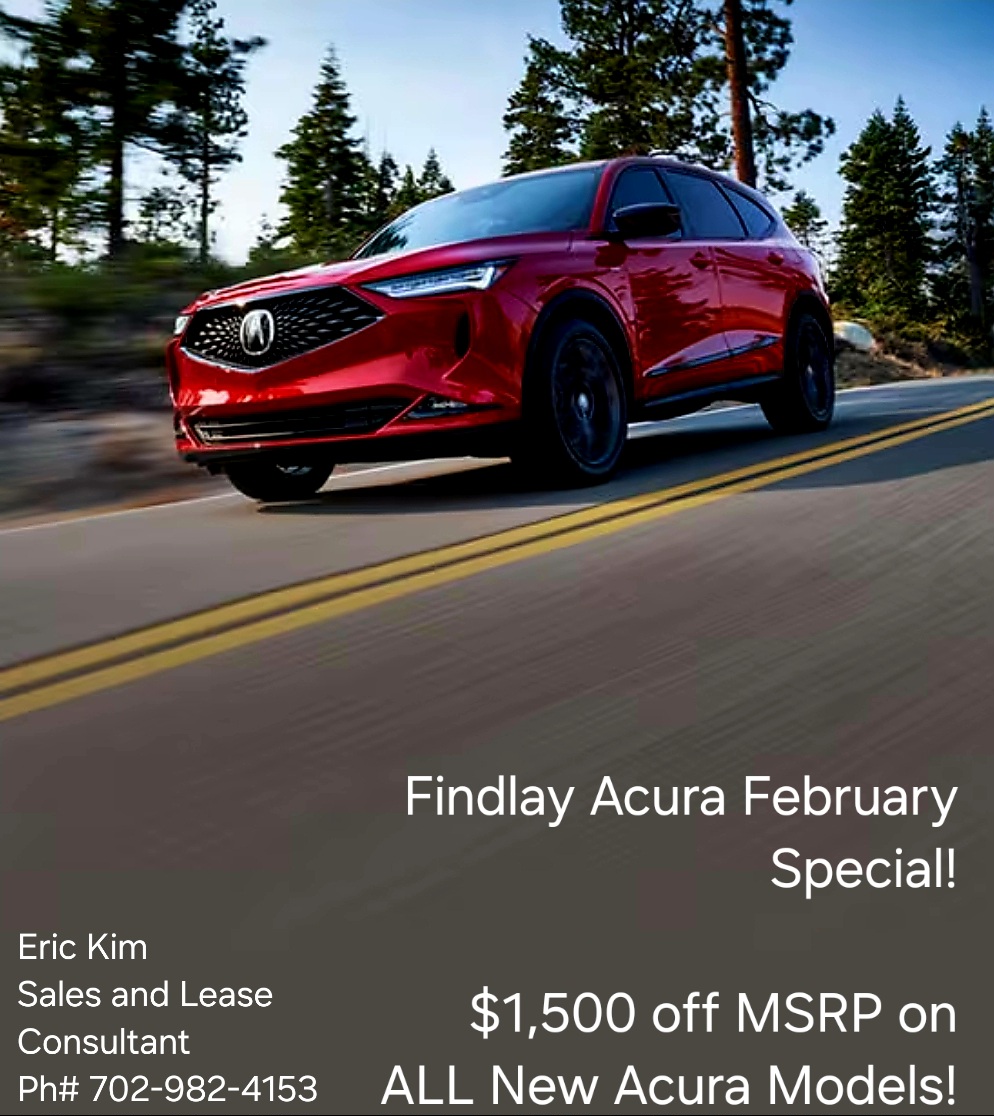 FINDLAY Acura 2월 스페셜! ericjkim228 0 411 2024.02.03 11:09 안녕하십니까! 핀레이 아큐라에서 2월간 모든 새로운 아큐라 차량의 MSRP가격에서 1,500불을 디씨 해드립니다! 혹시 다른 아큐라 딜러에서 더 좋은 가격을 받으셨나요? 그 가격을 사진 찍으셔서 저희 딜러십에 오셔서 보여주신다면, 100% 그 가격보다 더 나은 딜을 해드립니다! 이번 달의 스페셜에 관심이나 질문이 있으시다면 저에게 연락 주시길 부탁드립니다! 감사드립니다!