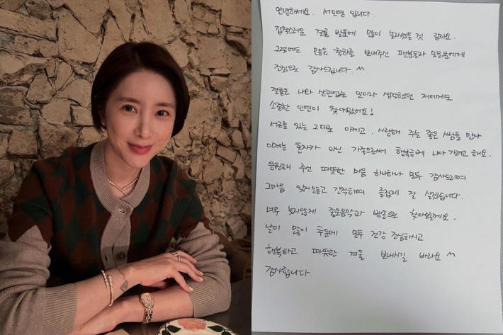 가수 서인영. 오른쪽은 결혼 소식을 알린 자필 편지. 서인영 인스타그램 © 제공: 노컷뉴스