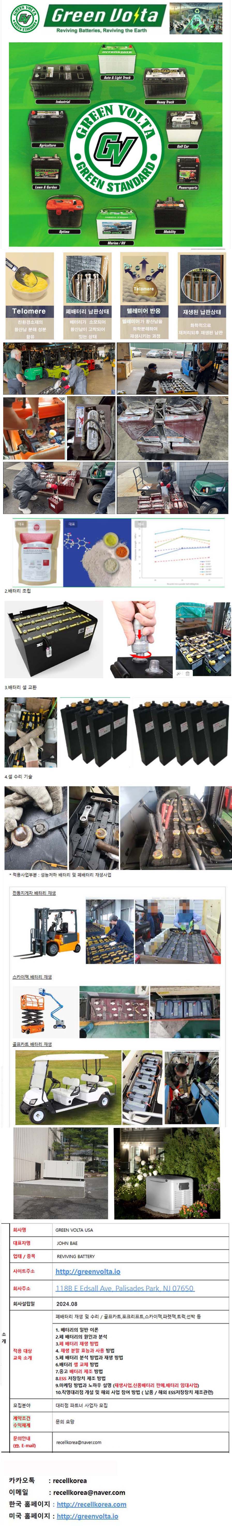 저희 회사의 주요 사업은 폐배터리 재생사업이며 주로 골프카트 배터리 ,일렉트릭포크리프트,파렛잭,스카이잭 그리고 자동차 AGM배터리를 재생을하고 있습니다