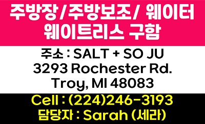 주방장, 주방보조 , 웨이터, 웨이트레스 구함
