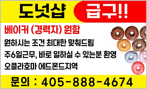 주6일근무, 바로 일하실 수 있는분 환영, 오클라호마 에드몬드지역