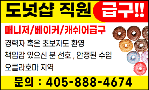 매니저/베이커/캐쉬어 급구, 경력자 혹은 초보자도 환영