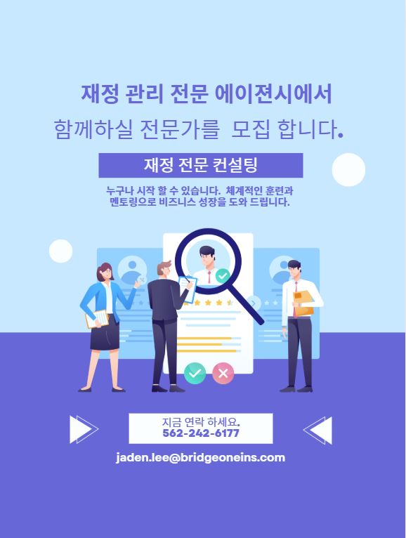 • 함께 일 할 보험 에이전트를 모집합니다.