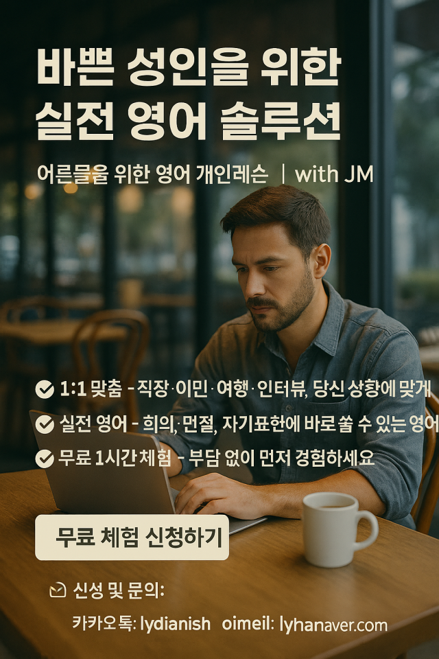 ✔️ 1:1 맞춤 – 직장·이민·여행·인터뷰, 당신 상황에 맞게