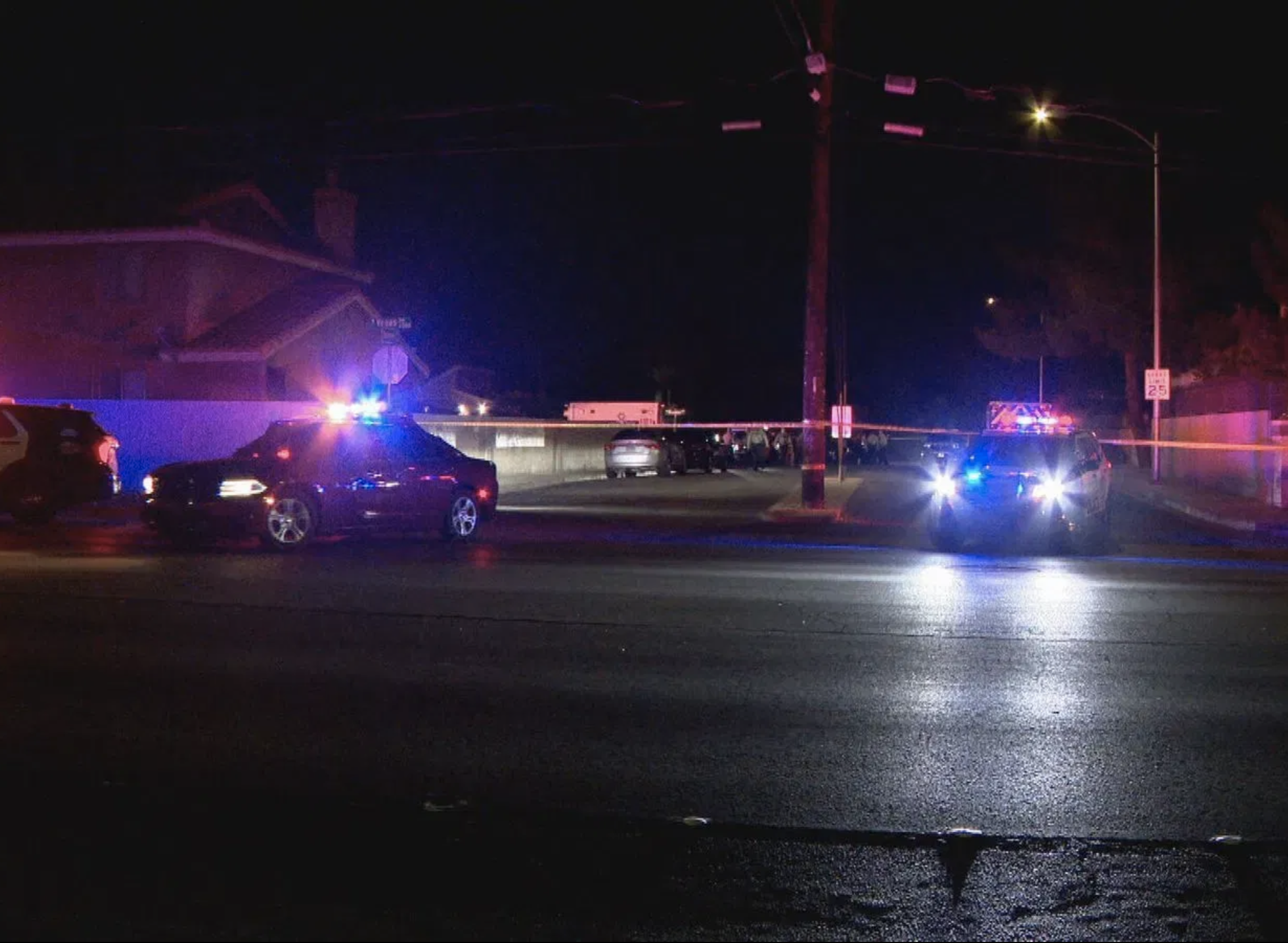 로버트 프라이스 중위에 따르면, 오후 7시 45분경 여러 명이 911에 전화를 걸어 Burning Wood Lane 1600번지(Vegas Drive와 Rainbow Boulevard 인근)에서 총성이 들린다고 신고했다.