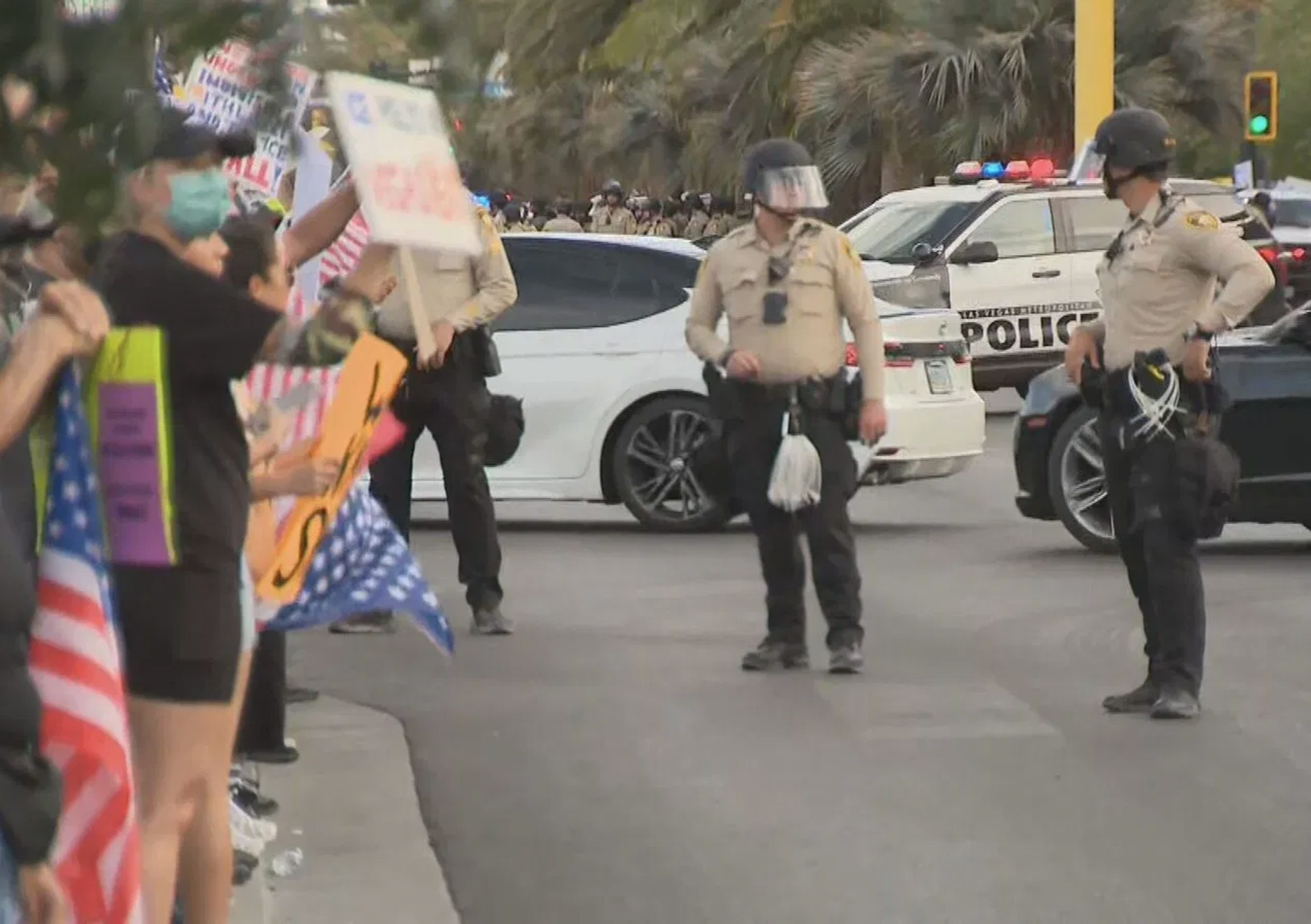 LVMPD에 따르면 시위자들이 도로를 점거하고, 일부는 돌과 물병을 던지며 경찰을 공격했다고 주장했다.
