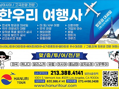한국및 전 세계 항공(관광)특가 한우리여행사(213-388-4141)