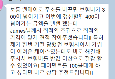 ***캘리포니아 같은 경우, 보험에 새로 가입하거나 트랜스퍼 하시면 2주 Waiting period가 있습니다! 미리 연락주시면 감사하겠습니다! 그리고, 일반 보험에이전트와 달리 저희 스터닝 팀은 메이저 보험회사에 직접 전화해서 가격 협상을 해드리고 있어 서비스에 대한 수수료를 받고 있습니다. 견적서를 먼저 받아보시고 저희랑 할 지 결정해주시면 됩니다***