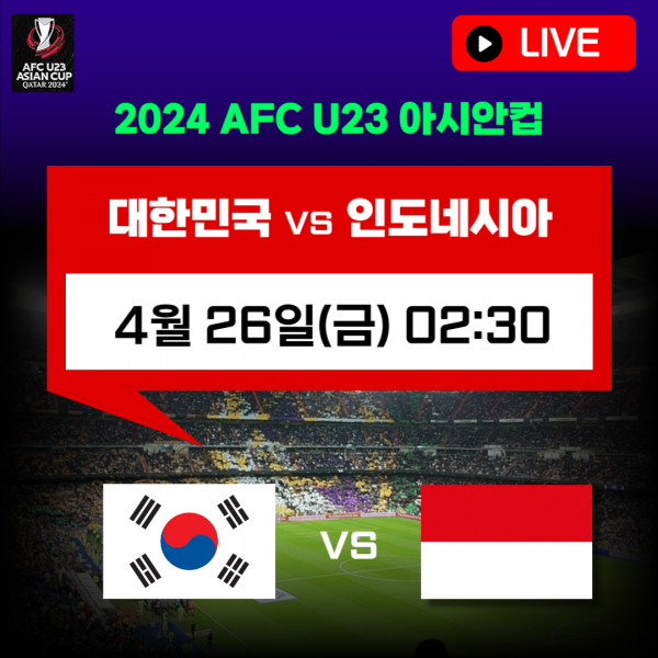 한국 vs 인도네시아 축구 중계 / 2024년 4월 26일 (금) 02:30 (한국시간)