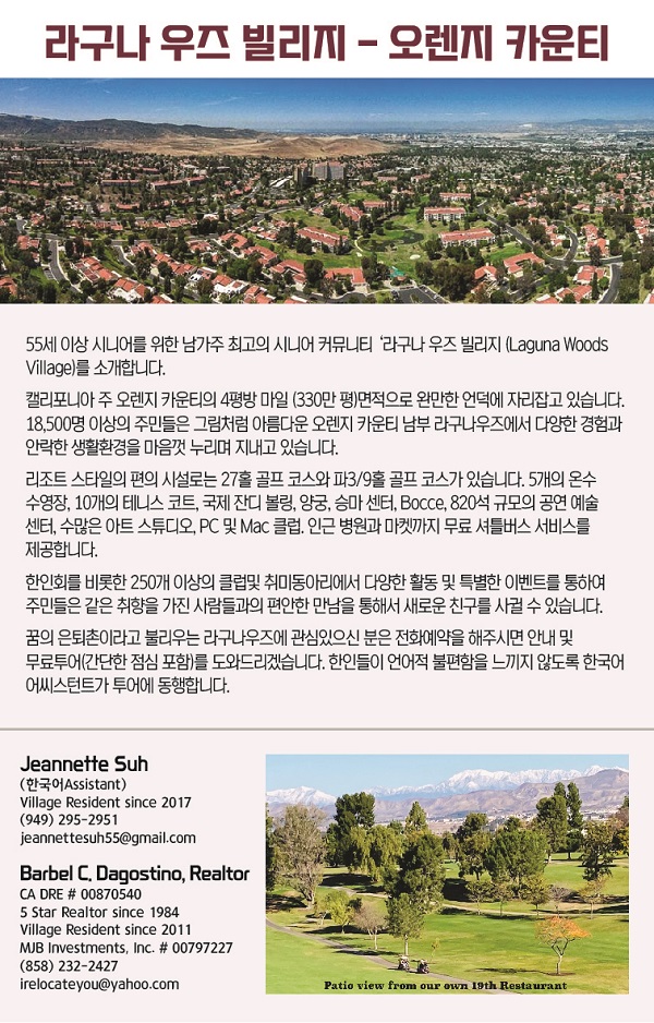55세 이상 시니어를 위한 남가주 최고의 시니어 커뮤니티 ‘라구나 우즈 빌리지 (Laguna Woods Village)를 소개합니다.