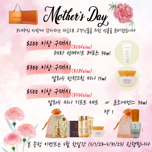 설화수, 후 한국 화장품 저렴한 가격에 구매하세요 SMKoreabeauty 0 605 2023.05.22 10:10 https://smkoreabeauty.com + 611 Mother's Day 기념 5월 한달간 할인행사 중입니다.궁금하신점 있으시면 (657)238-7018로 연락주세요.https://smkoreabeauty.com/