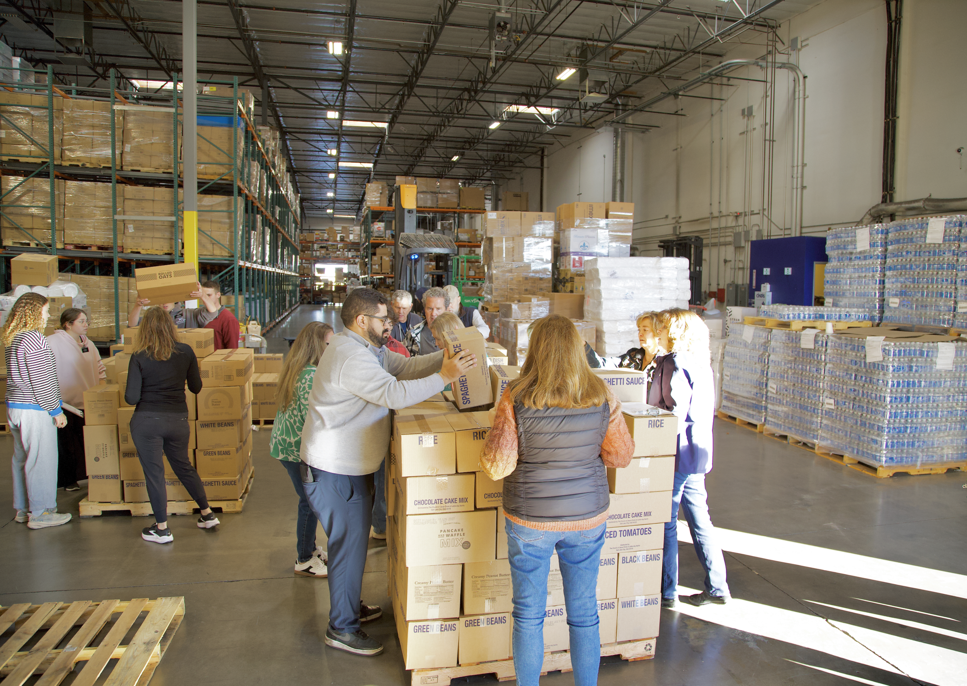 이 식품들은 유타주 솔트레이크시티에 있는 주교단 중앙 창고(Bishops’ Central Storehouse)에서 제공되었으며, 양 교단의 자원봉사자들이 함께 나서서 분배를 도왔다.