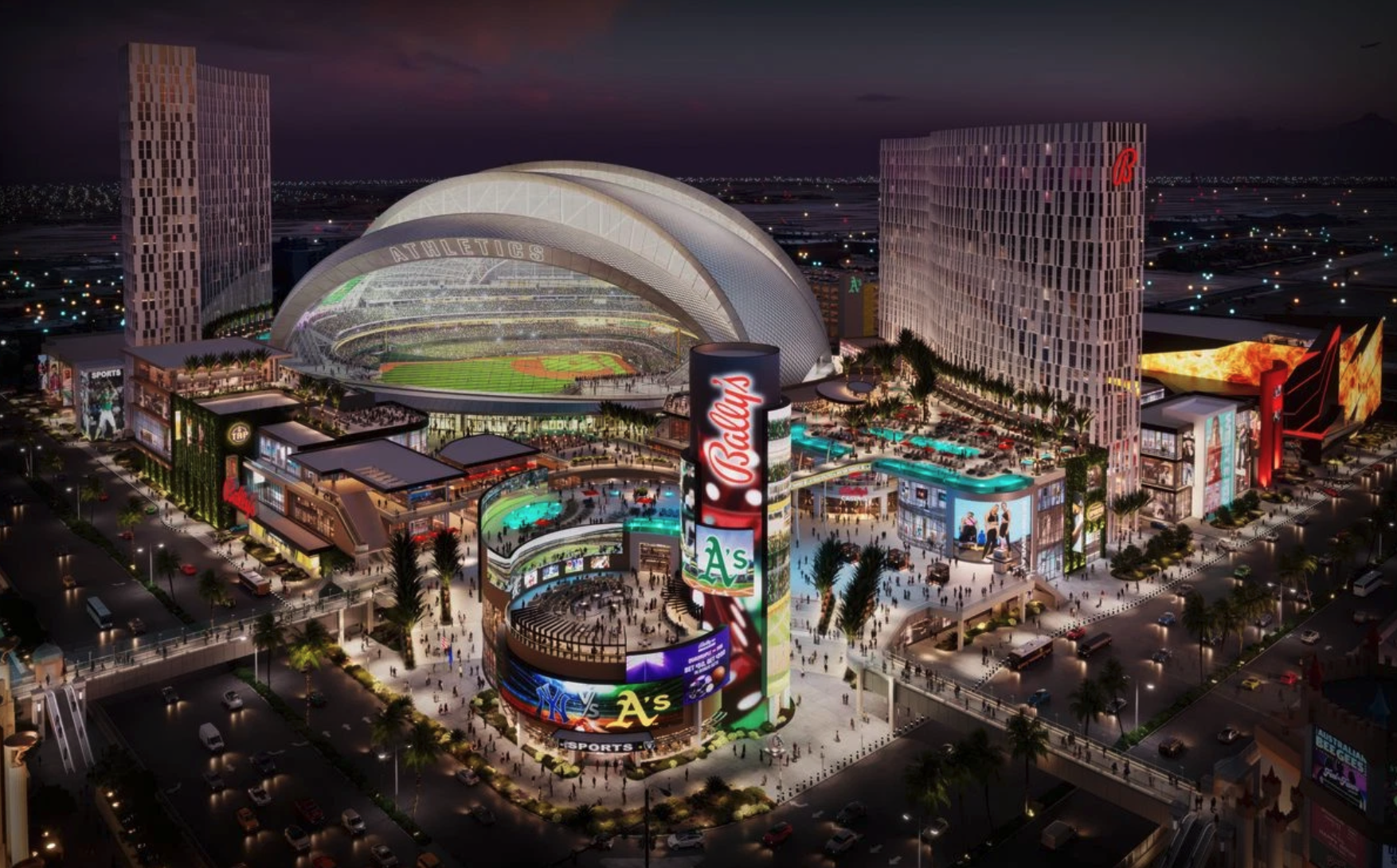 이 프로젝트는 메이저리그 야구팀 라스베이거스 애슬레틱스의 새 구장과 35에이커 부지를 함께 사용할 예정입니다.