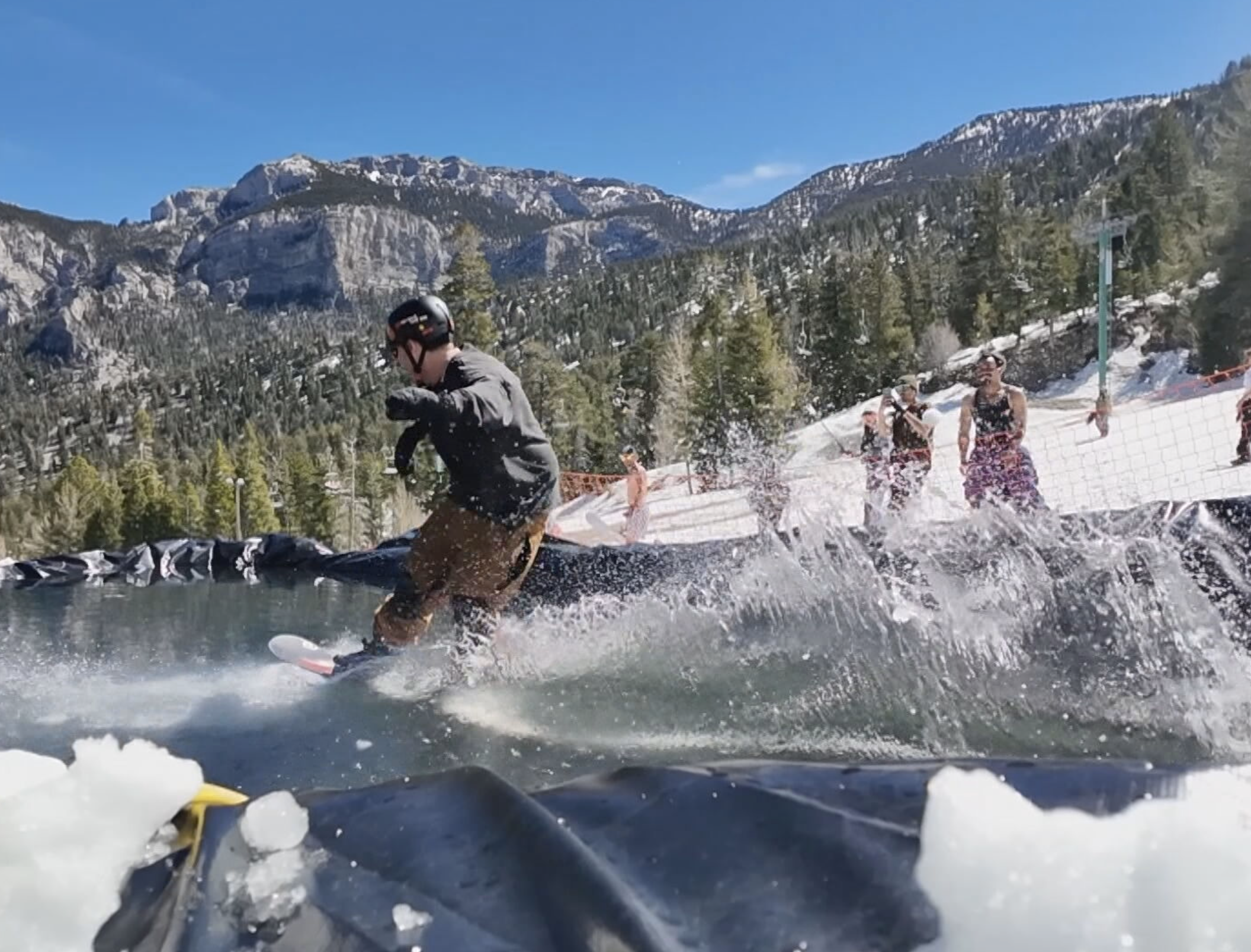 폭염으로 인해 Lee Canyon의 겨울 시즌이 예상보다 일찍 끝나면서, 스키어와 스노보더들은 시즌 마지막 날을 ‘폰드 스킴(pond skim)’이라는 봄맞이 이벤트로 기념했다.