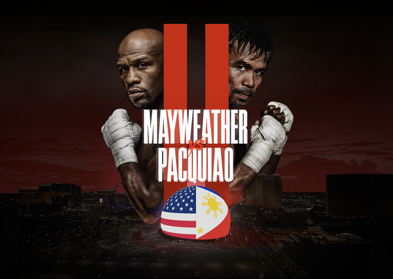 메이웨더는 2015년 MGM 그랜드 가든 아레나에서 열린 첫 대결에서 파키아오를 심판 전원 판정으로 이겼다. 당시 경기는 HBO와 쇼타임이 공동으로 유료 중계했다.